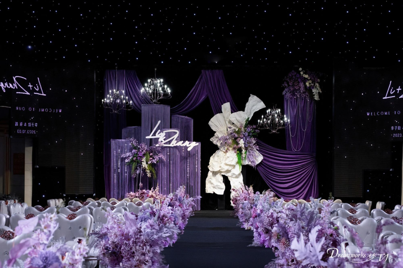 这场婚礼以紫色为主色调,神秘而浪漫,花园风格的花艺为婚礼现场增添了一份自然气息,仿佛置身于一个梦幻的花园之中。新人养的猫咪也作为特别嘉宾出席了这场婚礼,为这场婚礼增添了一份温馨和可爱[更多…]