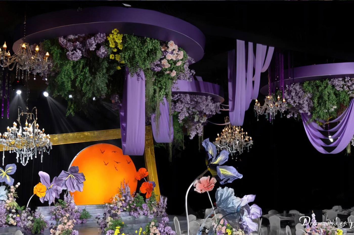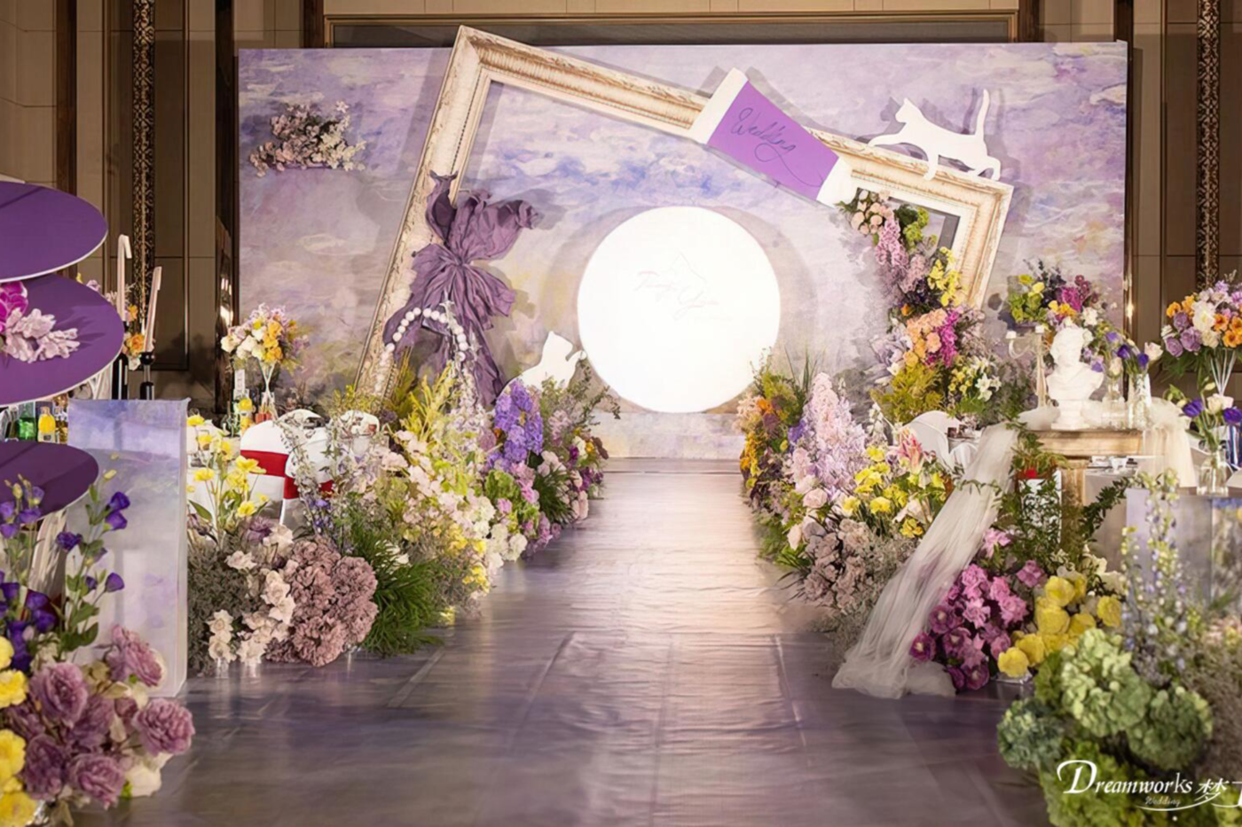 这场婚礼以 紫色为主色调,神秘而浪漫, 油画背景 为婚礼现场增添了一份艺术气息,仿佛置身于一幅唯美的画作之中[更多…]
