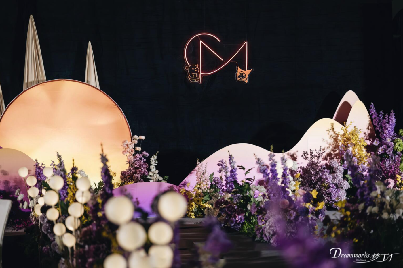 这场婚礼以紫色为主色调,神秘而浪漫,花园风格的花艺为婚礼现场增添了一份自然气息,仿佛置身于一个梦幻的花园之中。新人养的猫咪也作为特别嘉宾出席了这场婚礼,为这场婚礼增添了一份温馨和可爱[更多…]