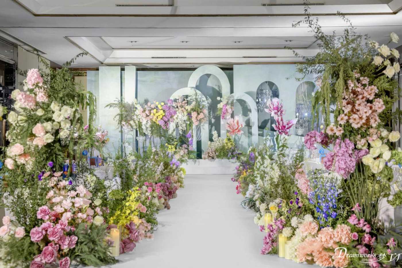 这场婚礼以青绿色为主色调,清新而充满活力,多巴胺风格的花艺点缀着婚礼现场,如同他们之间热烈而奔放的爱意[更多…]