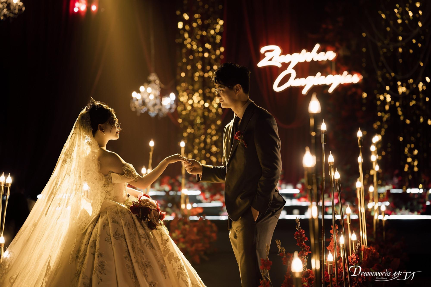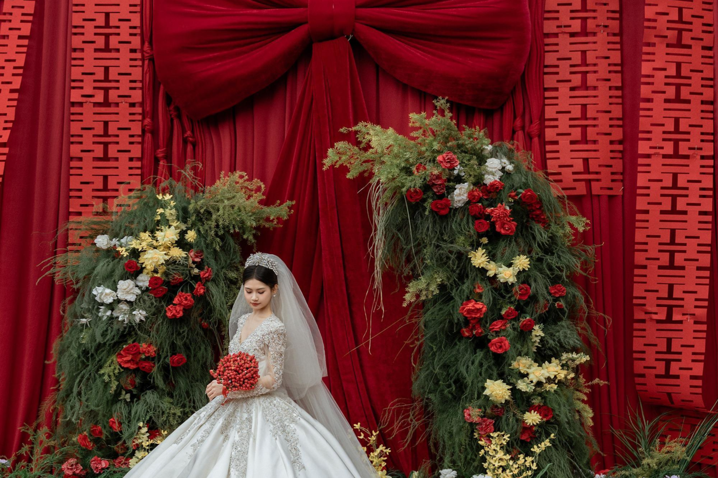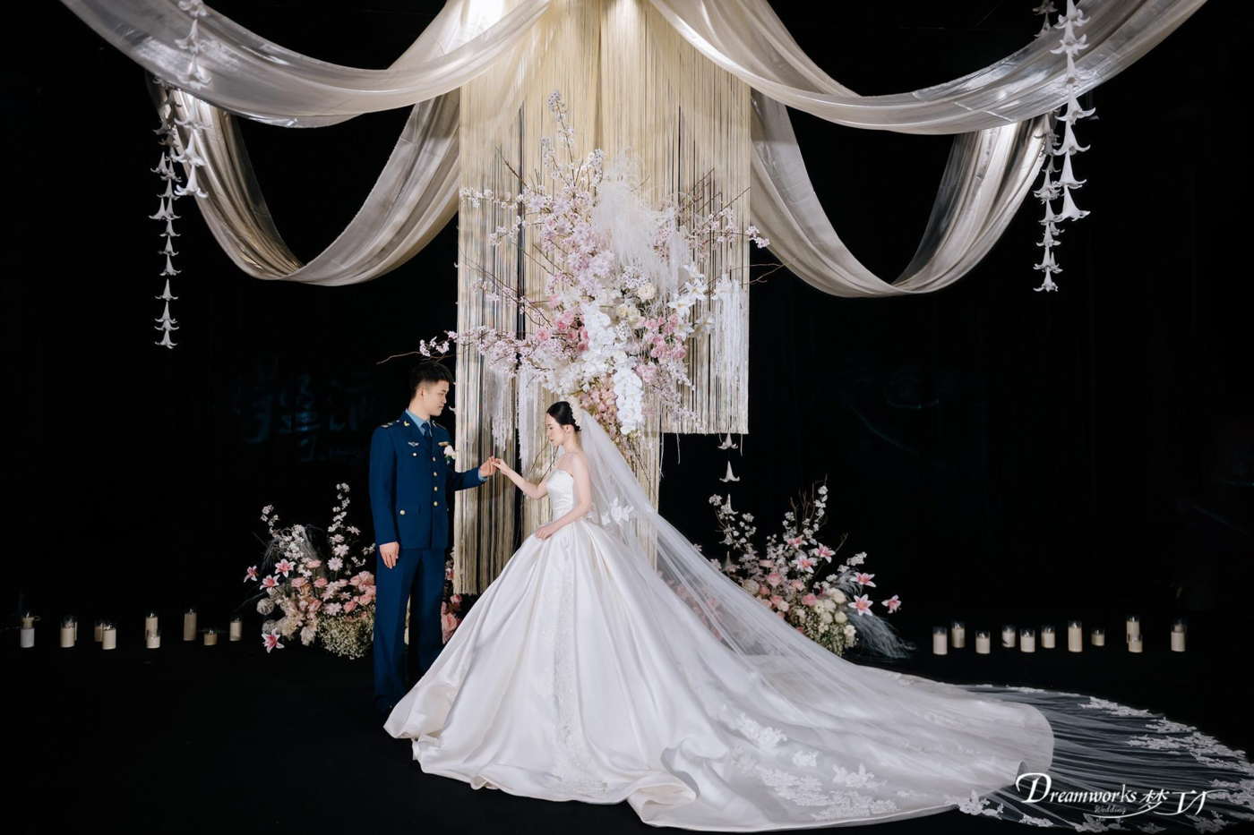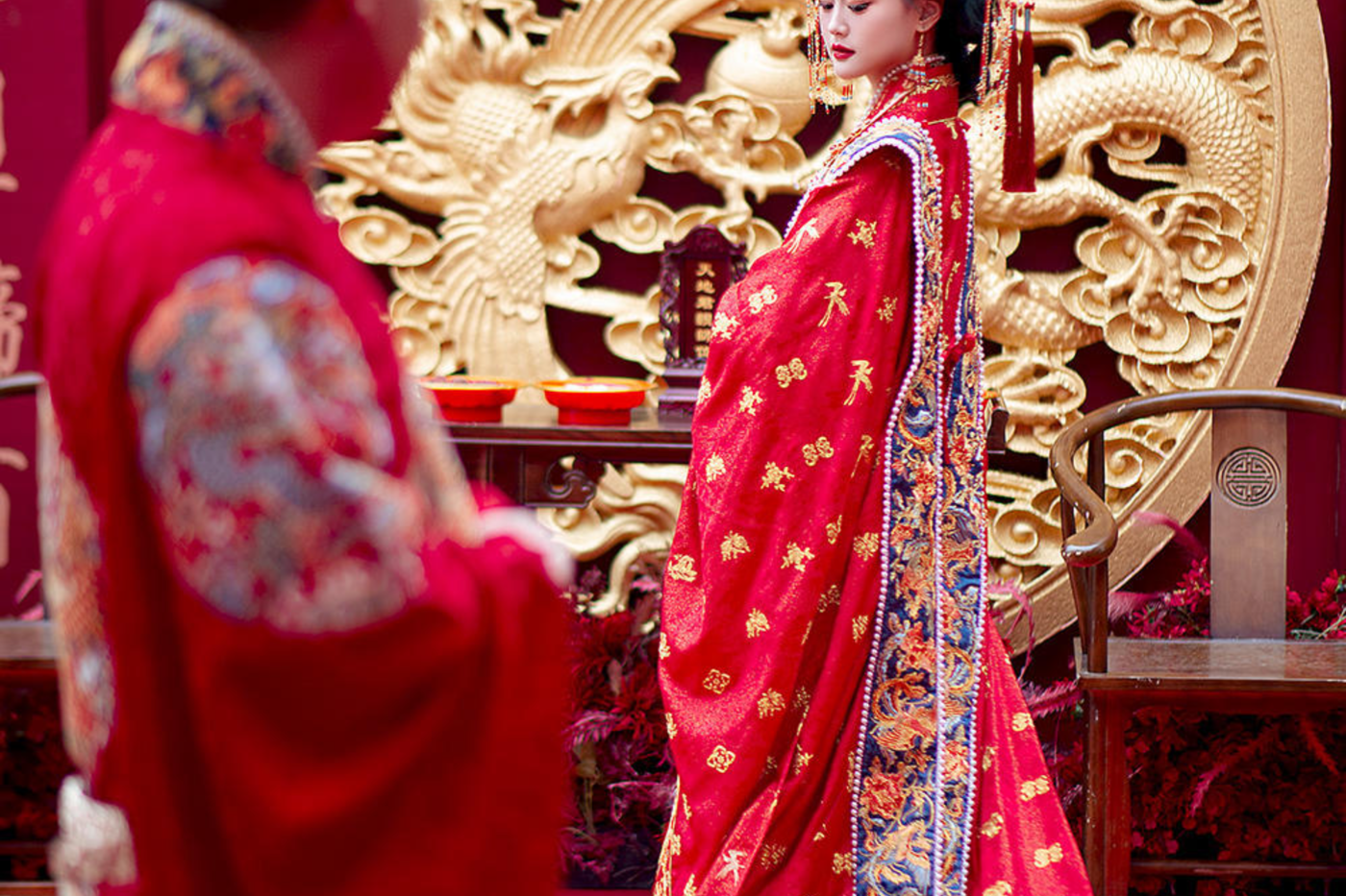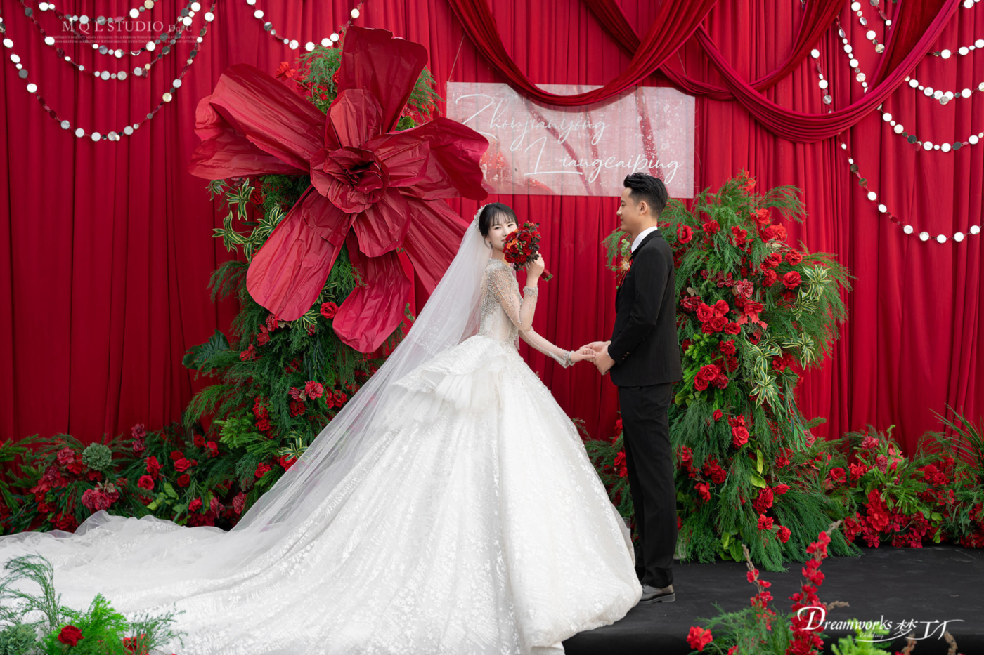 以华夏千年「山岳之稳,龙凤之仪」为魂,取朱砂红与靛青蓝为韵, 绘就一幅新中式婚典长卷,红是凤羽铺就的十里妆台,蓝是龙鳞拓印的星河天幕,而绵延的山峦,是沉默却永恒的誓言载体[更多…]